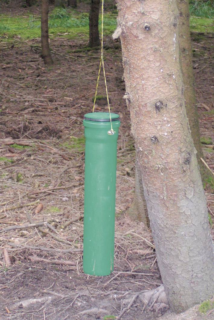 Kirrrohr für die Schwarzwildkirrung und Ablenkfütterung. Langanhaltende Beschäftigung bei kleinsten Kirr-Mengen. Einfach nur an einen Baum hängen und das Kirrgut bleibt trocken.