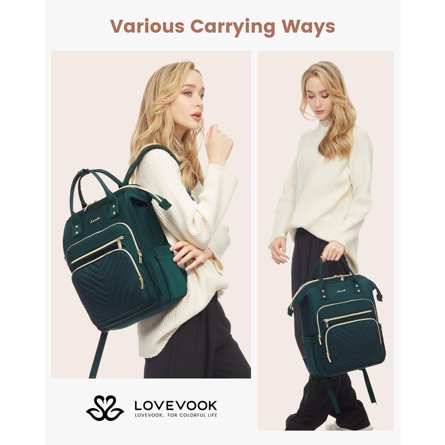 Der LOVEVOOK Damenrucksack in elegantem Dunkelgrün ist der perfekte Begleiter für das moderne Leben. Dieser Rucksack bietet nicht nur Stil, sondern auch Funktionalität. Mit seinen 5 Fächern und 16 Taschen bietet er reichlich Platz für all Ihre täglichen Essentials, einschließlich eines 15,6-Zoll-Laptopfachs und eines 11-Zoll-iPad-Fachs.