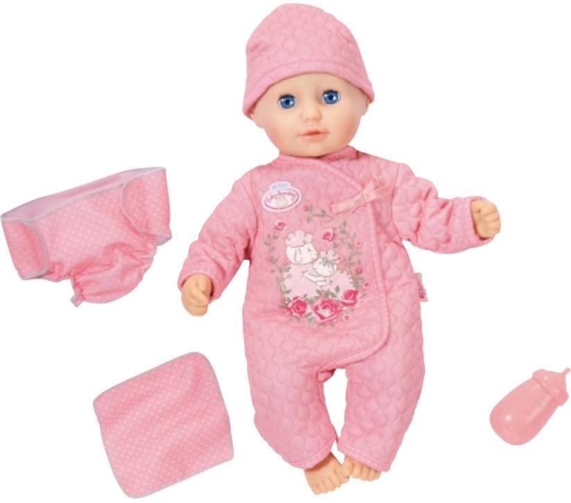 Die Kleine mit lebensechten Funktionen, Sounds und Babyzubehör hat beim Spielen richtig Spaß. Batterien nicht enthalten. Ab 24 Monaten. Baby Annabell Little Baby Fun ist ein süßes Baby, das beim Spielen so richtig Spaß hat. Bekommt sie einen Kuss auf die Stirn, ahmt sie ihn mit süßen Bussigeräuschen nach oder ruft nach ihrer Mama. Am liebsten lässt sie sich aber am Bauch kitzeln und lacht, was das Zeug hält. Oder sie singt, wenn sie nach rechts und links gewiegt wird. Spielen macht natürlich hungrig und müde: Baby Annabell nuckelt eifrig an ihrem Fläschchen. Ups, ein paar Tröpfchen gingen daneben. Macht nichts. Wenn die mit dem Tuch abgewischt werden, ist sie wieder glücklich. Nach dem Essen noch ein Bäuerchen, damit die Kleine beim Windeln wechseln zufrieden vor sich hin brabbeln kann. Und dann wird ein bisschen im rosafarbenen Kuschelanzug mit Rosen-Schäfchen-Druck geschlummert. Wiegt man die Baby Fun hin und her, schließt sie ihre Augen und schläft mit einem zufriedenen Schnarchen ein. Baby Annabell Markenspielpuppe mit lebensechten Funktionen Reagiert auf Berührung und Bewegung Ermöglicht ein realistisches, fantasievolles Rollenspiel und fördert die Ausprägung von Verantwortungsbewusstsein und Einfühlungsvermögen Batterien erforderlich Baby Annabell Little Baby Fun 36cm mit Strampler und Mütze. Inkl. Fläschchen, Windel und Tuch.