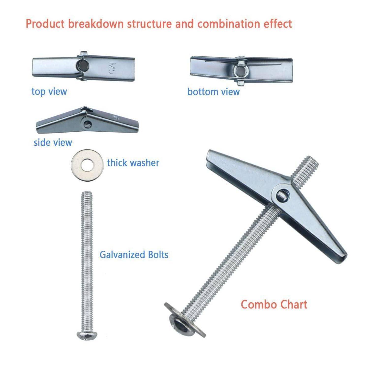 Kippdübel 40 Sätze 120 Stück Klappdübel Spreizdübel M3 M4 M5 M6 für Gipskarton Hohlraumwände