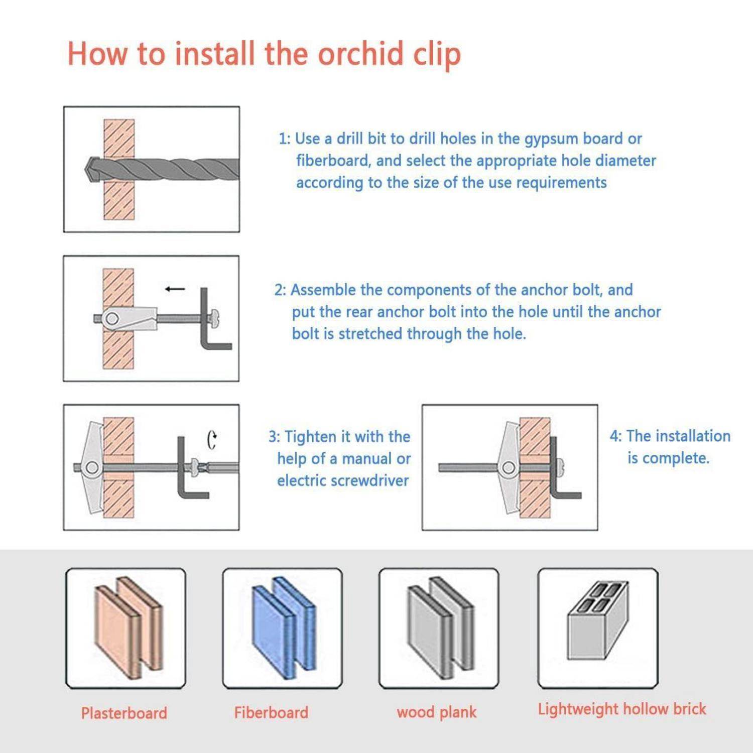 Geeignet für Gipskarton und Hohlraumwand sowie Faserplatte und Tür, ideal zur Befestigung von Lampen, Wandschränken oder Garderobenstangen.