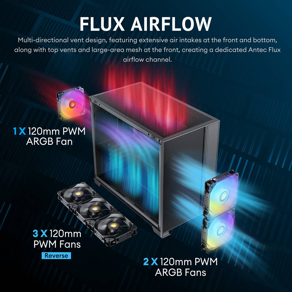 ANTEC FLUX M ATX/Micro-ATX/ITX Midi Tower PC Gehäuse , schwarz
