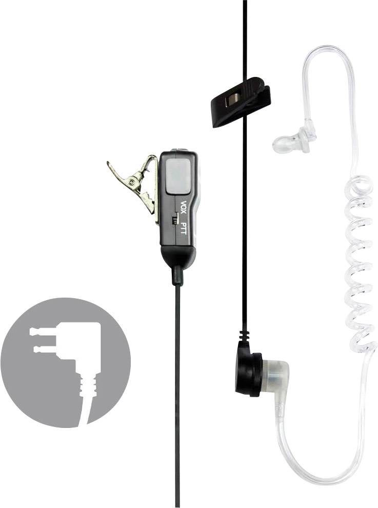 Sehr professionelles Headset mit "Clear Tube" - Ohrhörer und kleiner separater Sendetaste. m. Vox/PTT Umschaltung.