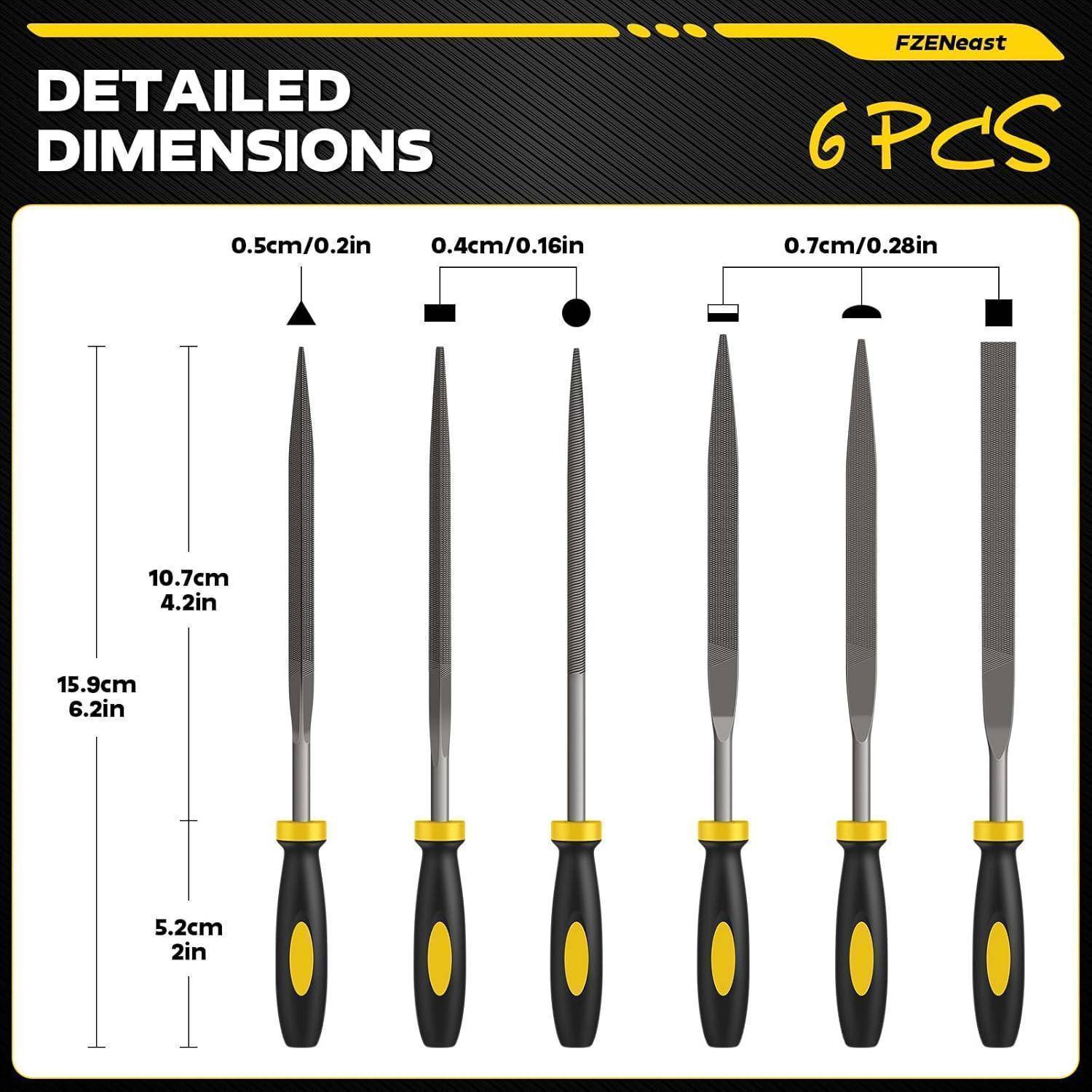 - KOMPLETTES HANDFEILENSATZ: 6 Mini-Handfeilen – rund, halbrund, dreieckig, quadratisch, flach und flachspitz – jede 4.2 Zoll lang, perfekt für feine Details.