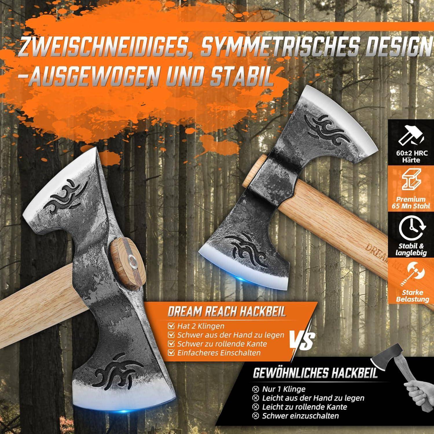 Axt Doppelaxt Camping Outdoor Holzgriff Bushcraft Hellbraun