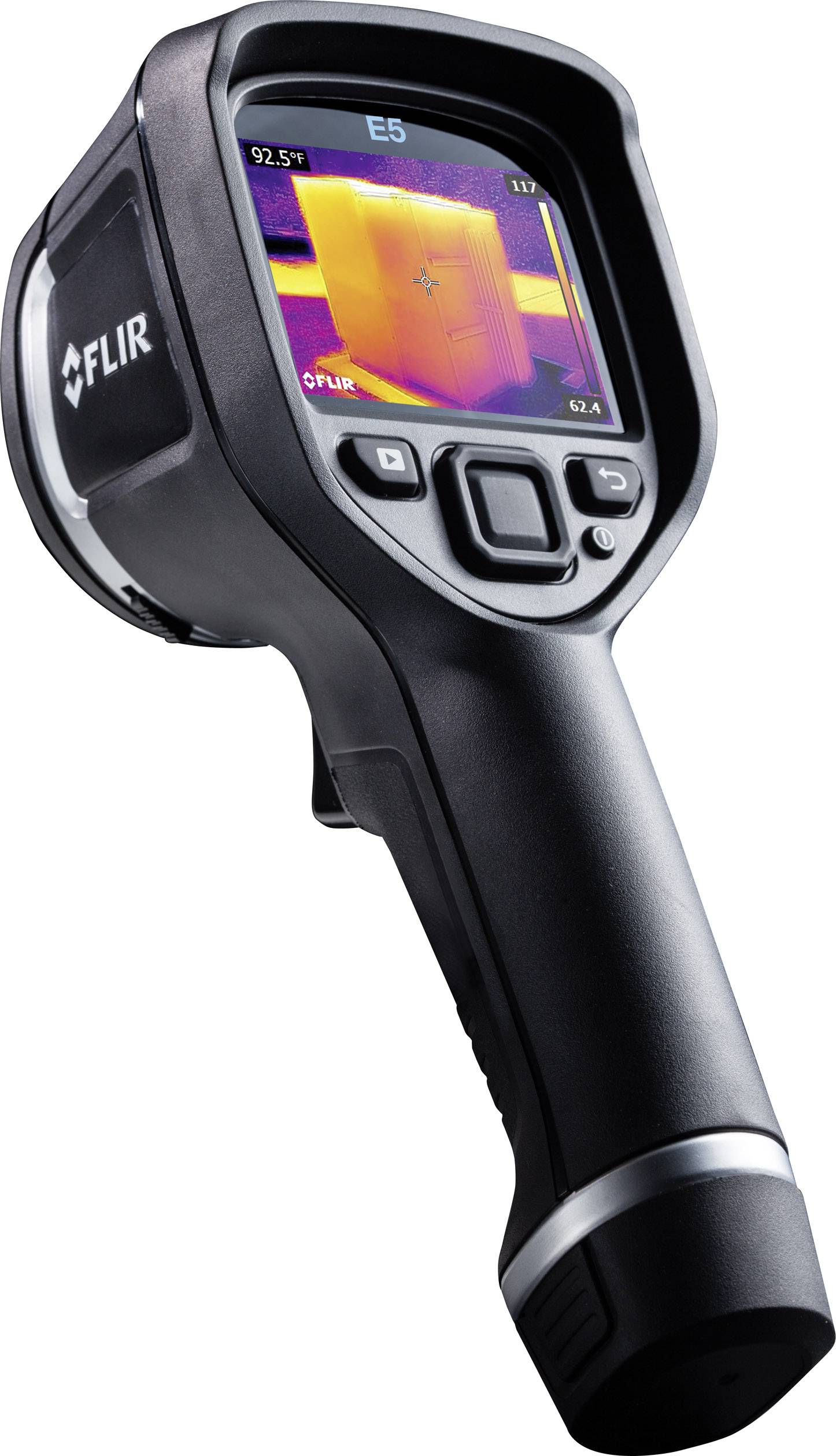 Die Flir E5xt vereint alle wichtigen Parameter, die für einen zuverlässigen, ergonomischen und preisgünstigen Messbetrieb gefordert werden. Mit der Flir E5xt wird das Arbeiten in 3 Schritten noch einfacher und zeitsparender: Anvisieren - Auslösen - Auswerten. Die Flir E5xt Wärmebildkamera ist das ideale Temperatur-Messwerkzeug für schnelle und präzise Spotmessungen in der Elektro- und Gebäude-Inspektion. Drei unterschiedliche Farbpaletten stehen zur präzisen Analyse zur Verfügung: Eisen, Regenbogen und Schwarz/Weiß. Mit der MSX®-Funktion (Multi Spectral Dynamic Imaging) können Realbild und IR-Bild stufenweise zur besseren Detaildarstellung überlagert werden. Die jpg-Wärmebilder können mit allen radiometrischen Daten über WiFi auf Tablets und Smartphones oder direkt über die Micro-USB-Schnittstelle auf dem Computer gespeichert werden. Jedes Inspektionsbild kann mit der kostenlosen Auswerte- und Analysesoftware ''FLIR Tools'' schnell und einfach ausgewertet werden.