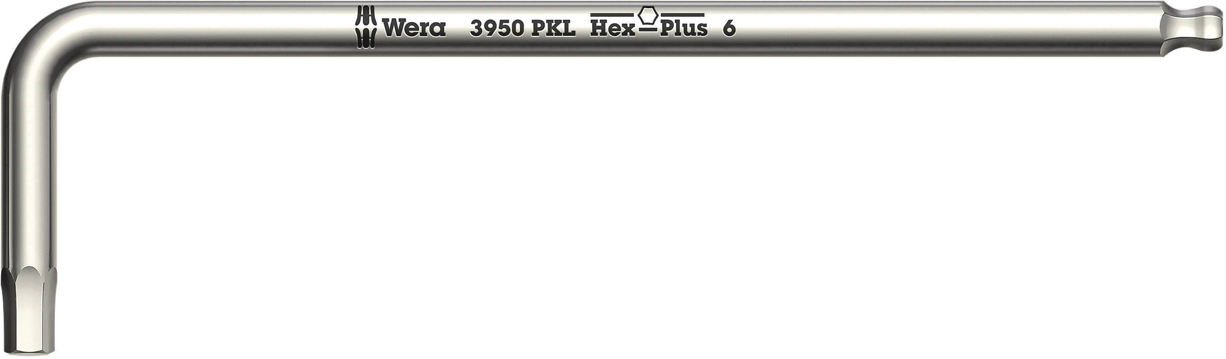 Hochwertiger Winkelschlüssel aus Edelstahl für Innensechskantschrauben von Wera. Edelstahl vermeidet die Übertragung von Fremdrost. Das Hex-Plus-Profil bietet größere Anlageflächen im Schraubenkopf. Die Kerbwirkung wird dadurch auf ein Minimum reduziert, die Zerstörung des Schraubenkopfes nahezu eliminiert. Mit Sechskantkugelkopf am langen Schenkel: Durch die kugelförmigen Abtriebsprofile ist ein Auslenken oder Schwenken der Werkzeugachse zur Schraubenachse möglich, so dass dadurch "um die Ecke" geschraubt werden kann.