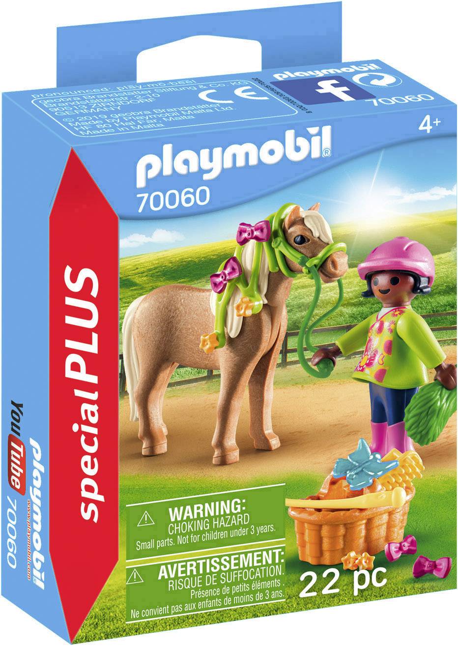 Liebevoll kümmert sich das kleine Mädchen um ihr geliebtes Pony. Sie kämmt seine Mähne, verziert sie mit Schleifen und gibt ihm frische Heu zu fressen. Die Beiden sind einfach unzertrennlich.PLAYMOBIL® Special Plus Sets garantieren extra viel Spielspaß zum kleinen Preis. Zum Sammeln, Spielen und Verschenken!