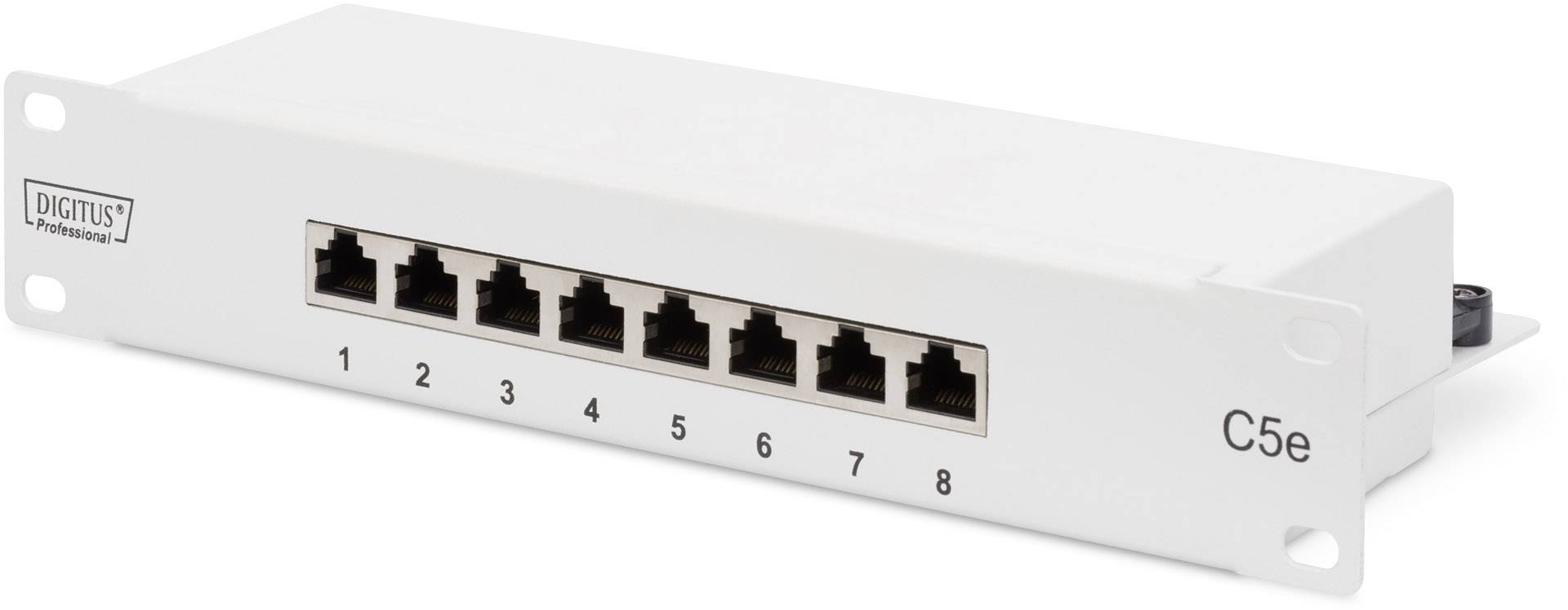 Die CAT 5e Patch Panel für 254 mm (10") Rackmontage von DIGITUS® sind geprüft und zertifiziert nach ISO/IEC 11801 und EN 50173. Kabelinstallation erfolgt über die LSA-Leisten, welche nach EIA/TIA 568B farbcodiert sind. Das Gehäuse besteht aus galvanisiertem kaltgewalztem Stahl gem. EN1.4301, UNS S30400, AISI 304 und LMSAD110.