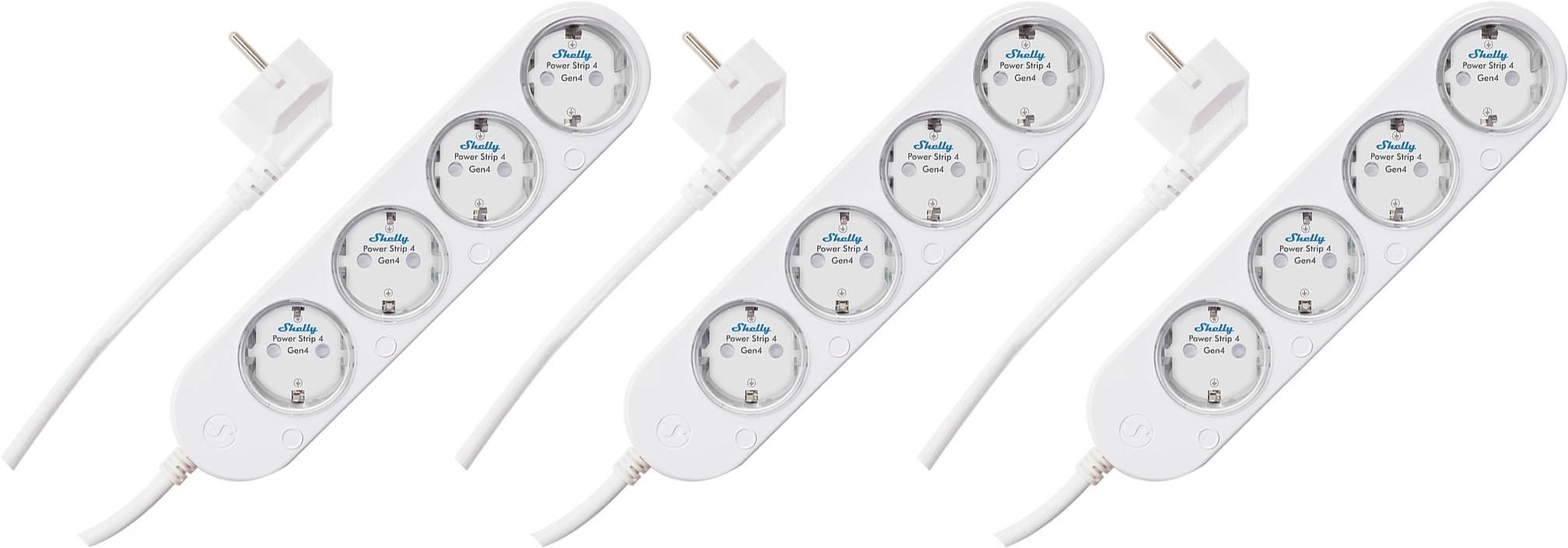 SHELLY Power Strip 4 Gen4, 4-fach Steckdosenleiste, weiß, WiFi, Bluetooth, Zigbee, Matter, Apple HomeKit, Alexa, 3 Stück