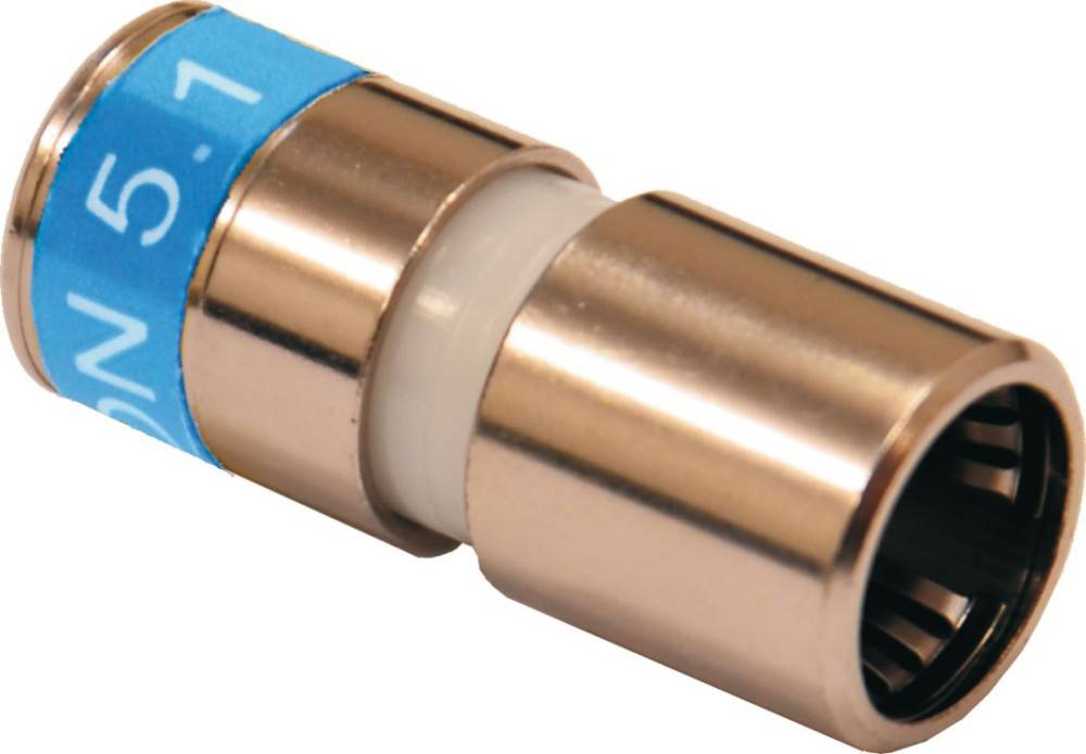 Typ F 7-51 KRCOMP, Wasserdichter F-Kompressionsstecker ø Innen 5.1 mm Koaxkabel ø 6,6 - 7,0 mm Betriebsbereich bis 3 GHz Schirmwirkung Class A+ Schirmdämpfung 30- 862MHz > 110 dB Schirmdämpfung 862-3000MHz