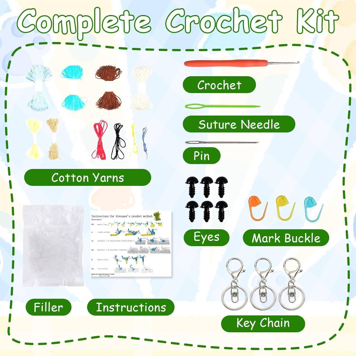 - Komplettes Set - Enthält alles, was Sie brauchen, um loszulegen: Garn, Häkelnadel, Maschenmarkierer, Ösen, Füllung und eine Schritt-für-Schritt-Anleitung.