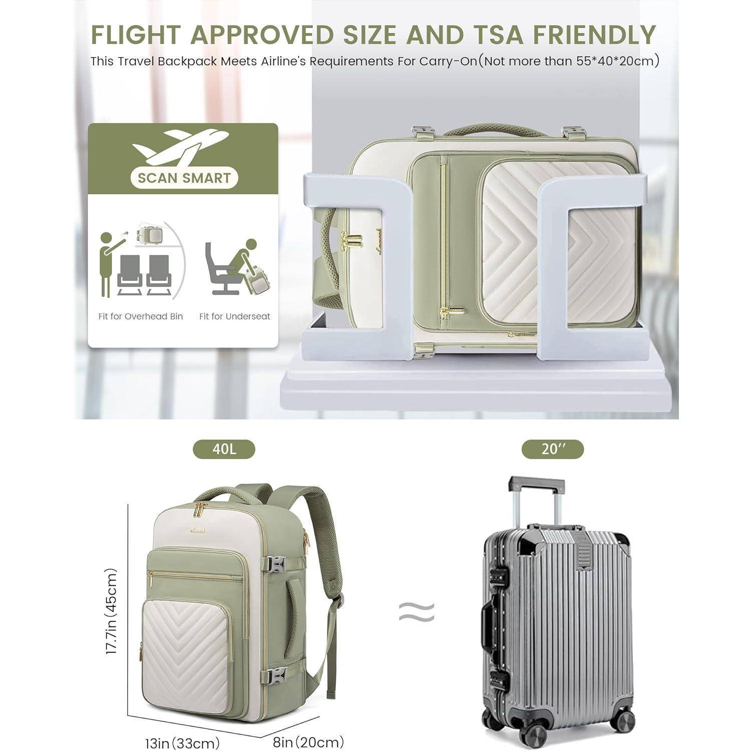 Dieser LOVEVOOK Reiserucksack Handgepäck Flugzeug ist das perfekte Geschenk für Frauen, die viel unterwegs sind. Ob Pendeln, Geschäftsreisen, Wochenendtrips oder Wanderungen, dieser Rucksack ist der ideale Begleiter. Er bietet nicht nur eine große Kapazität von 40 Litern, sondern überzeugt auch mit seiner Strapazierfähigkeit und Wasserdichtigkeit. Die 3 separaten Aufbewahrungstaschen ermöglichen es Ihnen, Ihre Reiseutensilien mühelos zu organisieren und den Überblick zu behalten.