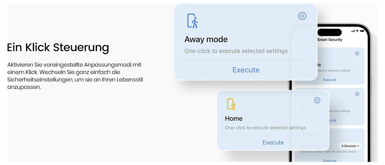 Die 166° Weitwinkel-Linse bietet fast 180° Sichtfeld und deckt sowohl den vorderen Bereich als auch seitliche Zonen ab. Perfekt für die Überwachung von großen Räumen, Parkplätzen oder Außenbereichen. Eine Kamera reicht aus, um auch schmale Gänge neben dem Haus zu überwachen, die zum Hinterhof führen.