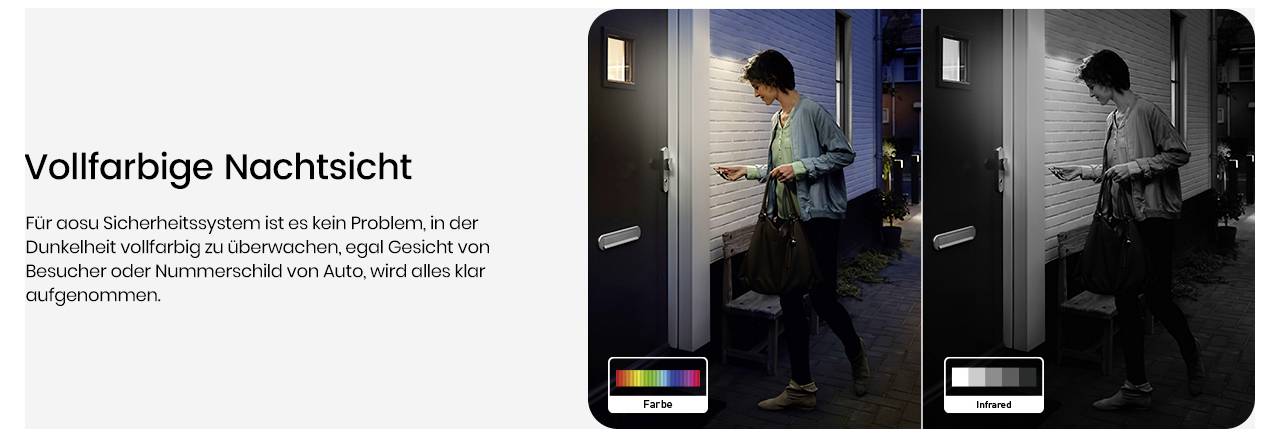Dank 166°-Weitwinkelobjektiv (nahe 180°) erfassen Sie jeden Bereich in kristallklarer Auflösung. Das 6-fache Digitalzoom zeigt selbst entfernte Details, während integrierte LEDs farbige Nachtsicht liefern.