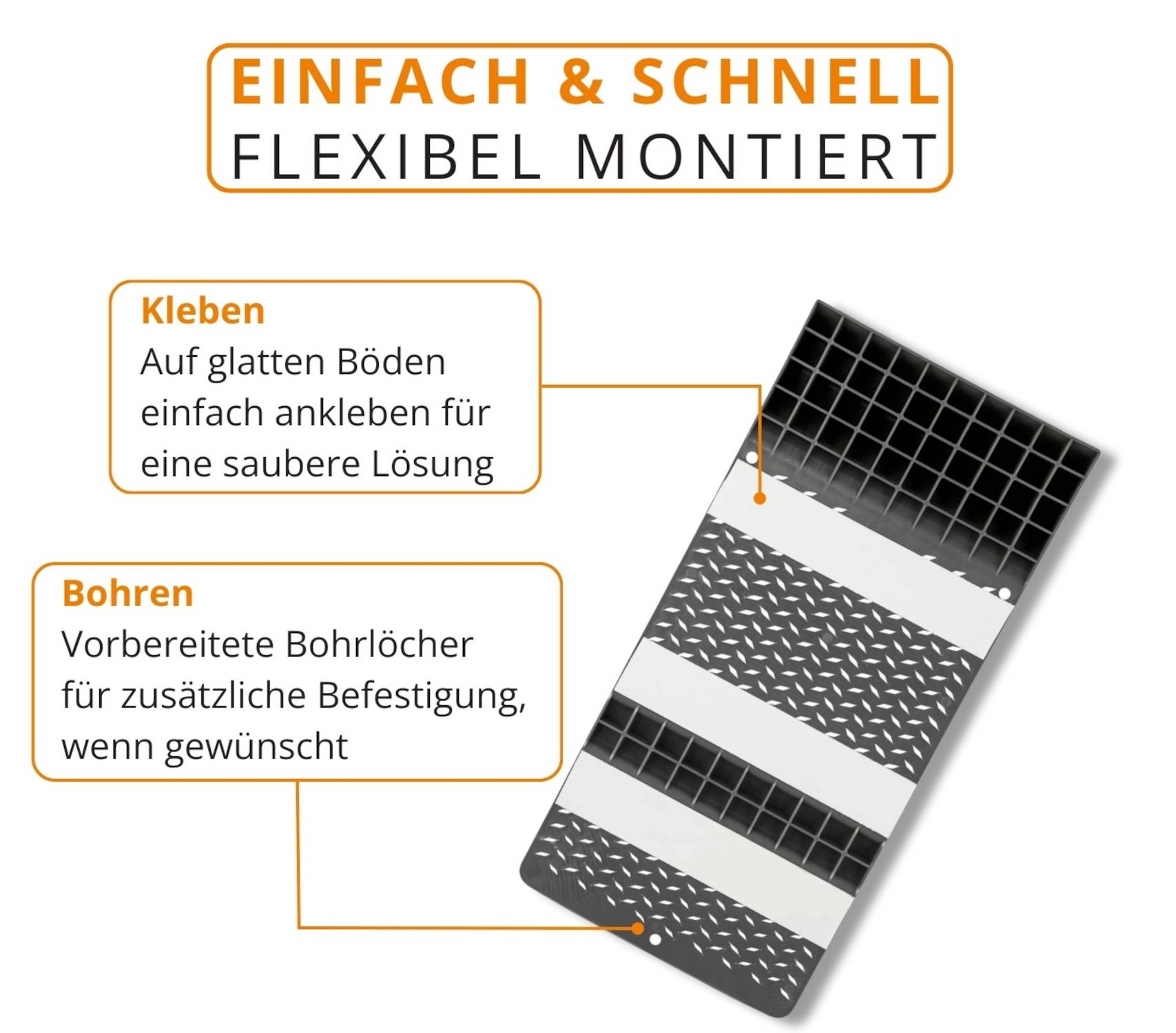 - Klebestreifen auf der Rückseite für glatte Böden