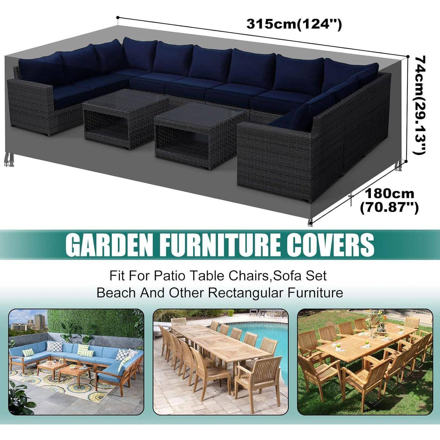 - Maßgenau & vielseitig: Passgenau für 315 × 180 × 74 cm; geeignet für Esstisch, Stühle, 8 Sitze, Rattan- oder Sofa-Set; Indoor & Outdoor einsetzbar.