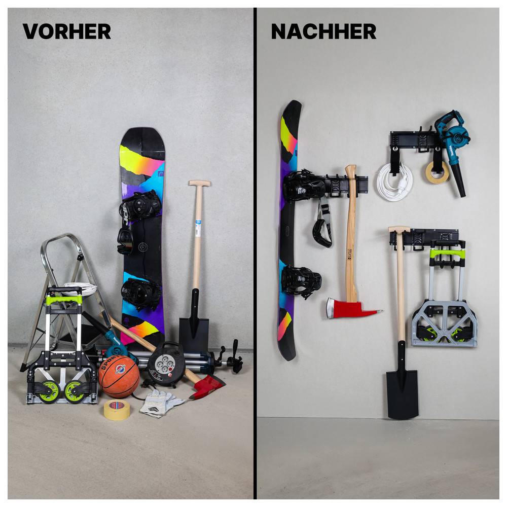 - Struktur: Das Wandhalterungssystem eignet sich ideal für die Aufbewahrung in Garage, Werkstatt oder Keller