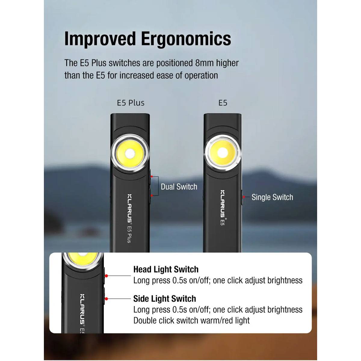 Klein, schlank und überraschend vielseitig: Die Klarus E5 Plus ist eine kompakte Alltagslampe, die man einmal eingesteckt und dann nicht mehr missen möchte. Sie wurde für den täglichen Gebrauch entwickelt und überzeugt durch ihr modernes Design, ihre angenehme Handhabung und ihre flexible Einsetzbarkeit – egal ob unterwegs, im Haushalt oder bei spontanen Outdoor-Momenten. Dank der Kombination aus Hauptlicht und zusätzlicher Seitenbeleuchtung passt sich die E5 Plus mühelos an unterschiedliche Situationen an. Sie lässt sich bequem mitnehmen, schnell befestigen und unkompliziert aufladen. Ob als zuverlässige Taschenlampe für den Alltag, als Helfer bei kleinen Reparaturen oder als Lichtquelle für unterwegs: Die Klarus E5 Plus liefert genau dann Licht, wenn man es braucht – ohne viel Aufhebens.