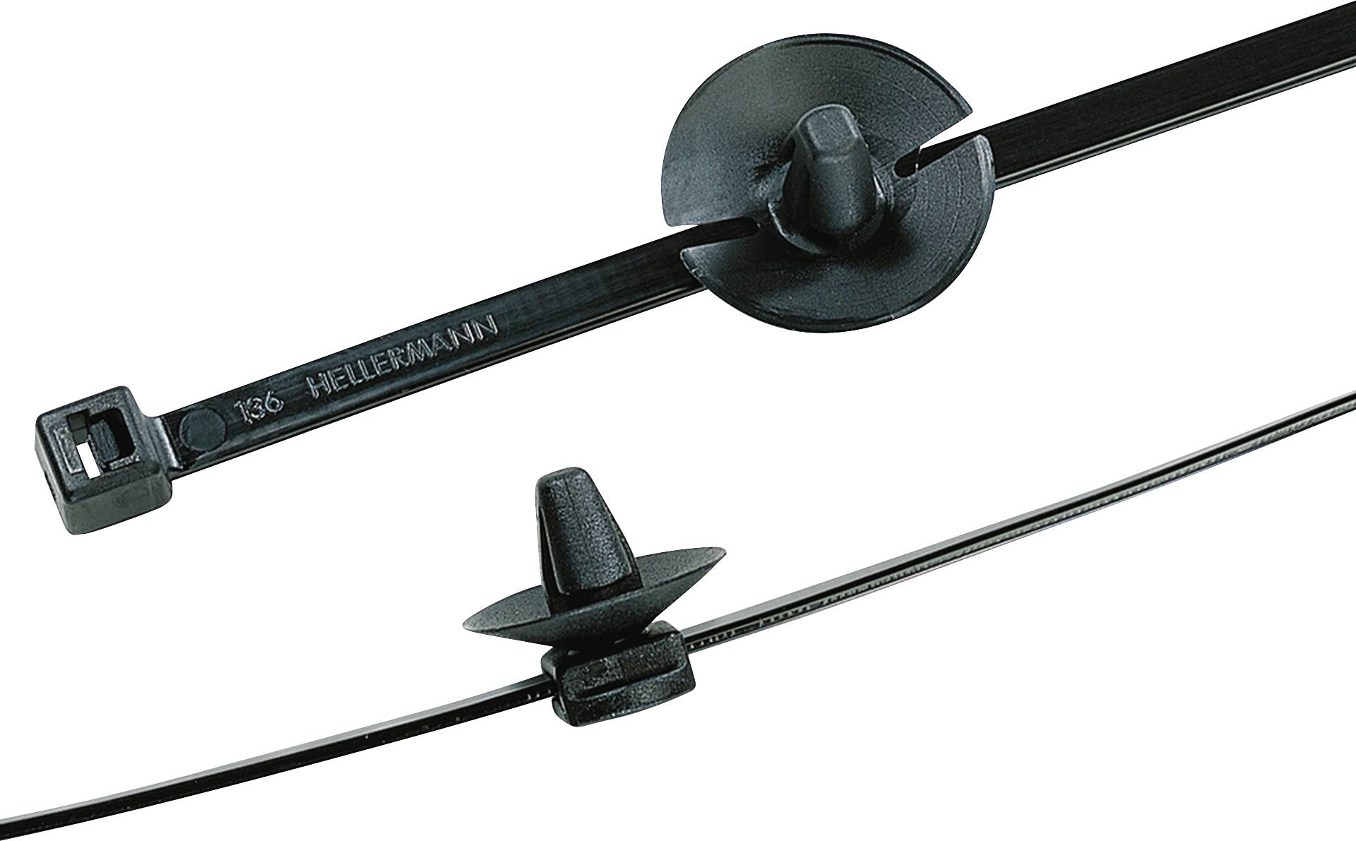 2-teiliger Kabelbinder mit Spreizanker als Fußteil, vormontiert. Der Kopf des Binders kann in die optimale Bündelposition gebracht werden. Einfache Montage, werkzeugfrei. Spreizanker verrasten hör- und fühlbar. Hohe Auszugs- und Haltekraft, auch bei Belastungen aus unterschiedlichen Richtungen. Schützt vor eindringendem Schmutz und Spritzwasser durch Teller. Eigenschaften Material PEEK:. -55 °C bis 240 °C Betriebstemperatur. Ausgezeichnete Beständigkeit gegen Chemikalien und Strahlen Diese Befestigungsbinder finden überall dort Anwendung, wo rationelles Arbeiten verbunden mit hohen Haltekräften gefordert ist. Sie werden uA. im Automobilbereich eingesetzt und überall dort, wo Leitungen sicher geführt werden sollen