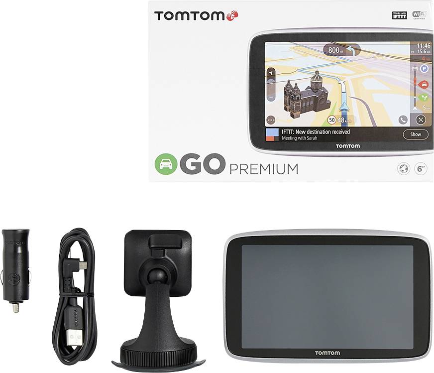 Updates über eingebautes Wi-Fi®: Sie erhalten die aktuellsten Weltkarten und Software-Updates für Ihr TomTom GO Premium über eingebautes Wi-Fi®. Kein Computer erforderlich!