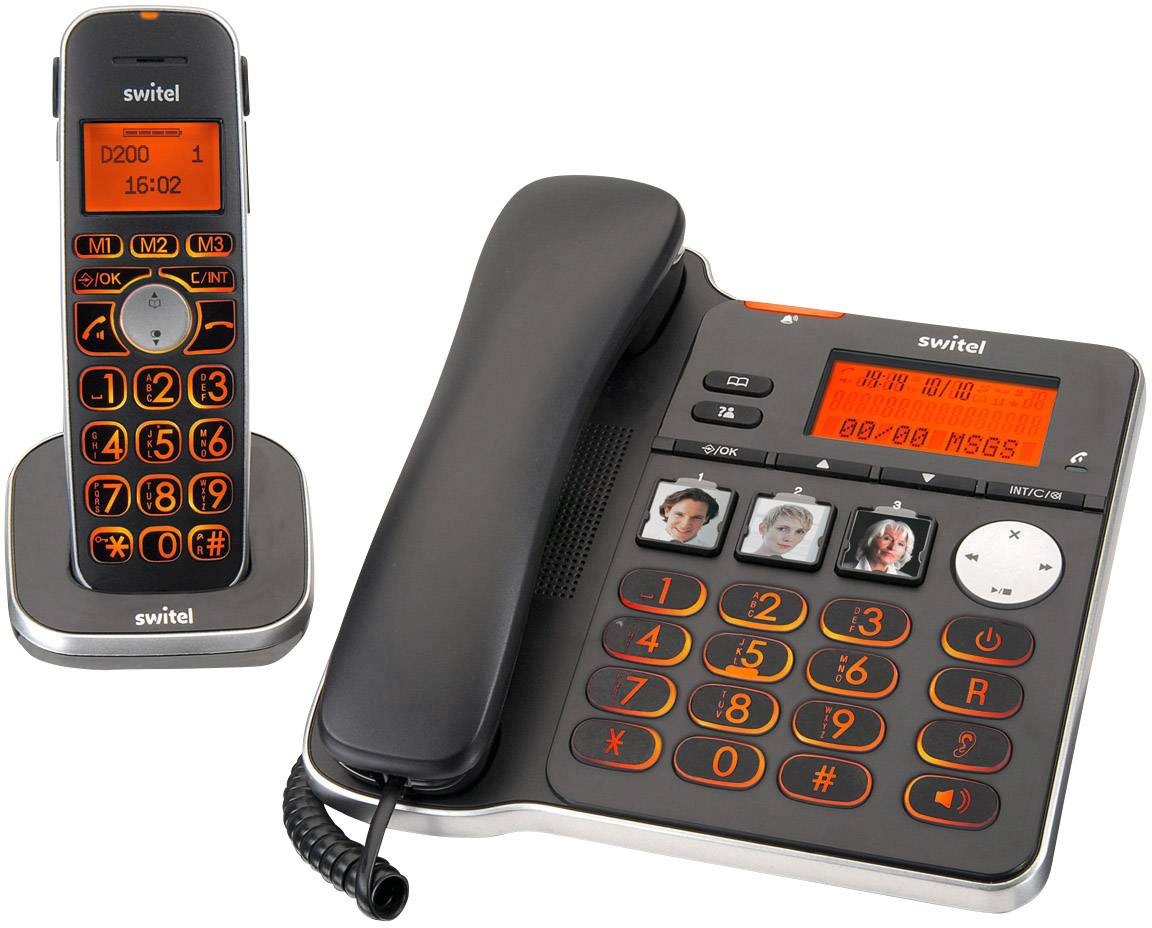 Switel D200 Schnurgebundenes Seniorentelefon  Anrufbeantworter, Freisprechen, Foto-Tasten, inkl. Mobilteil, Optische Anrufsignalisierung, Wahlwiederho