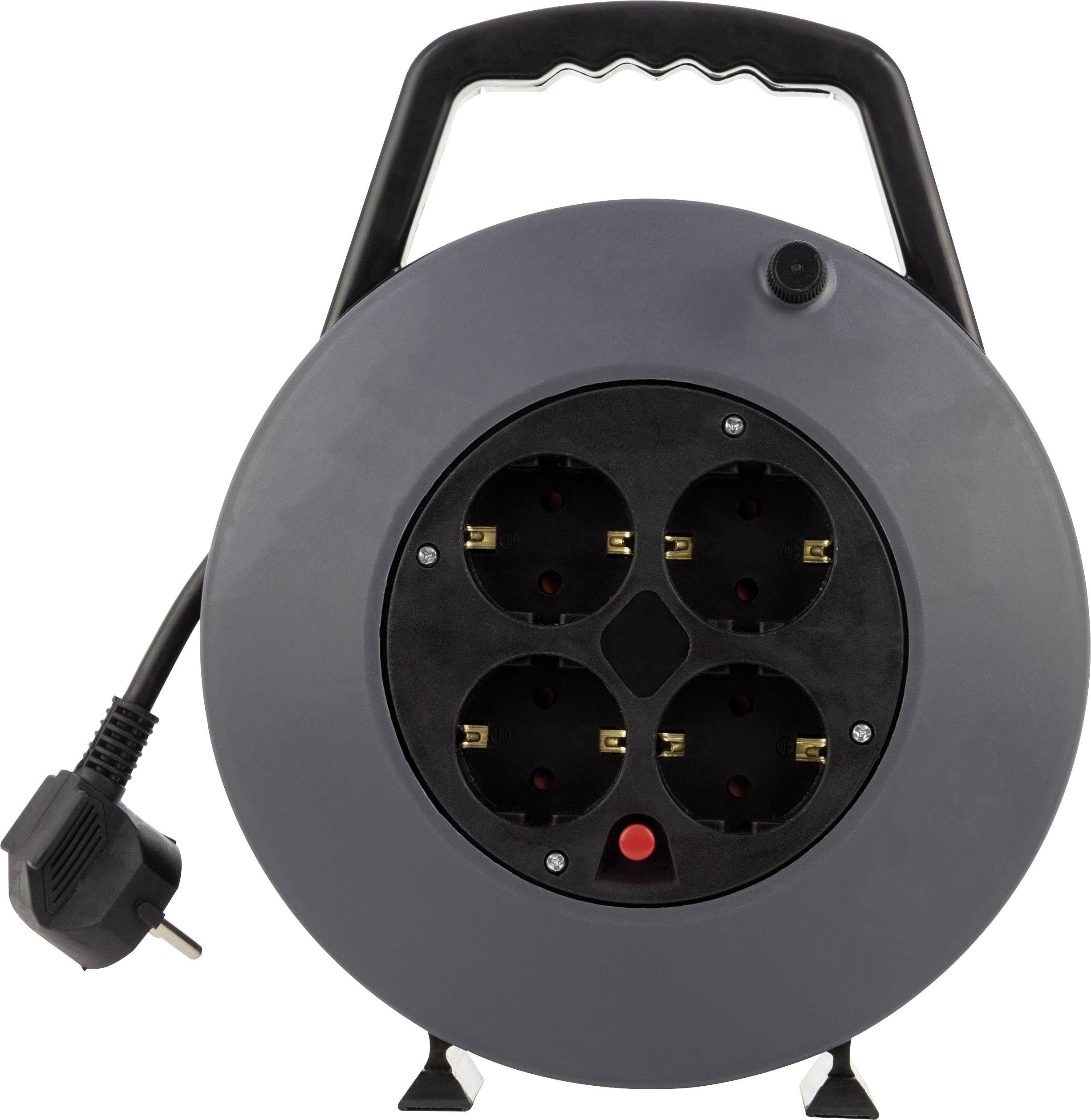 Gehäuse und Einsatz aus schlagfestem Kunststoff · Thermoschalter als Überhitzungsschutz, mit Wiederanlaufsperre · Drehbarer Wickelgriff