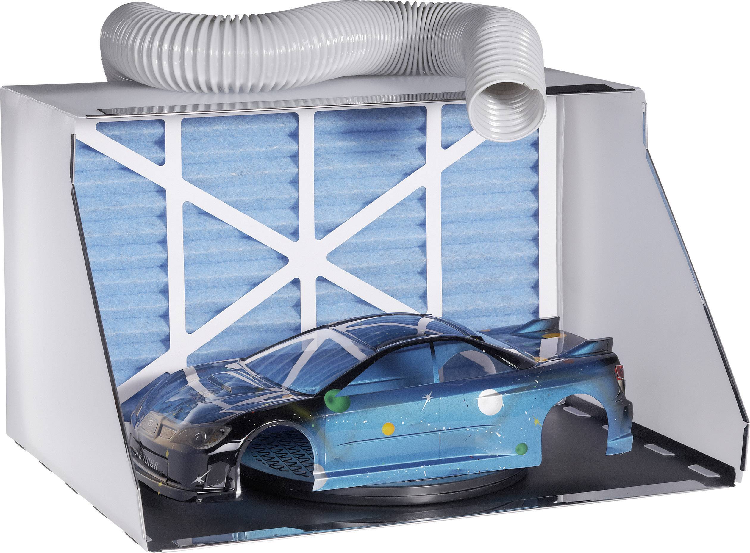 Mit dieser Airbrush-Absauganlage können Sie wirkungsvoll das Ausbreiten von Sprühnebel vermeiden. Dank des in drei Richtungen verstellbaren Auslasses können Sie bestimmen, wo die gefilterte Luft austreten soll. Auf dem integrierten Drehteller mit 250 mm Ø können Sie Ihr Objekt perfekt bearbeiten.