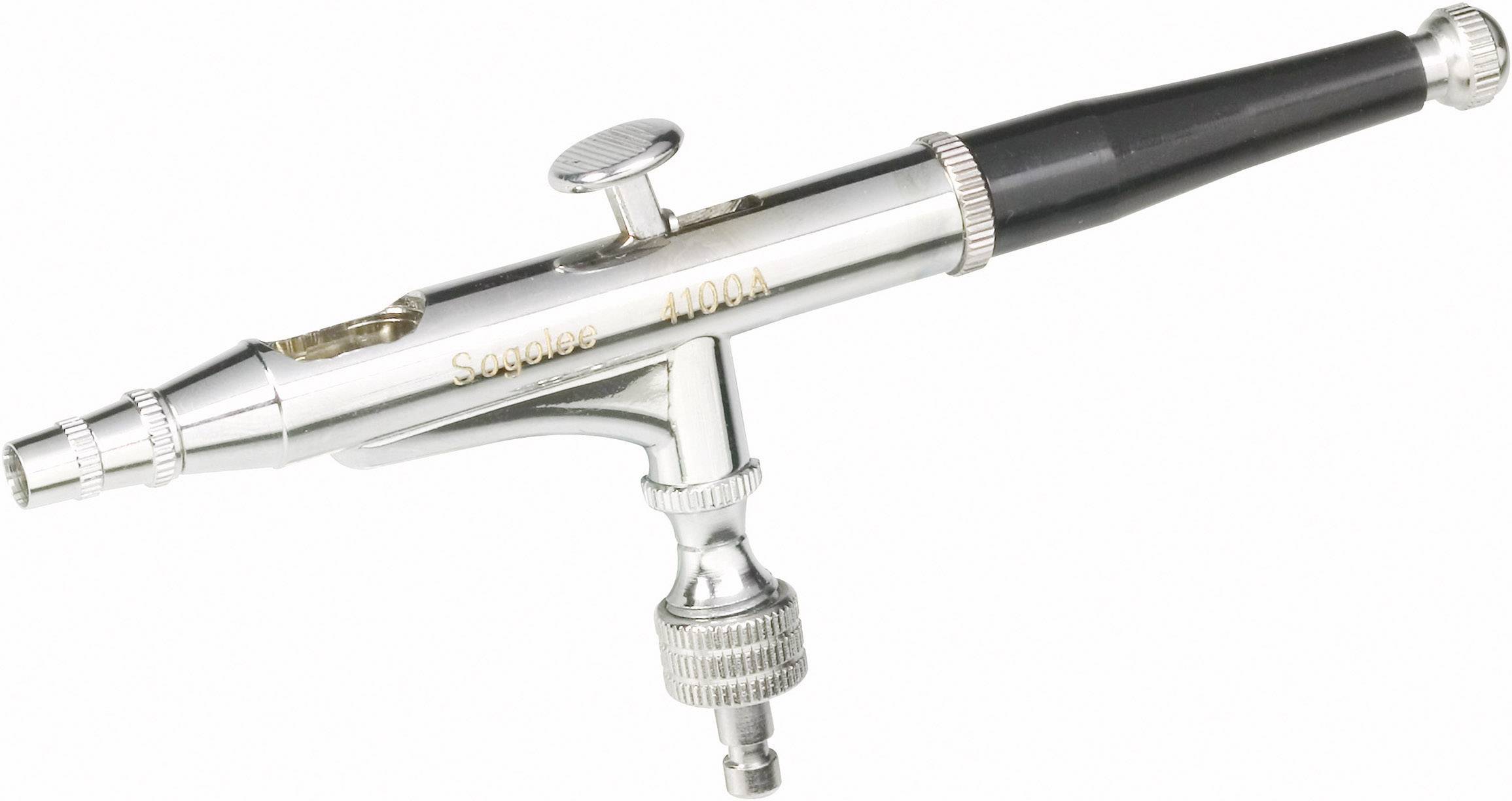 Die Spritzpistole HP 410 ist ein professionelles Gerät mit Double-Action-Technik für den Modellbau, Grafik, Nailart oder Retusche. Die Pistole eignet sich hervorragend für feinste Detailarbeiten wie Alterungs-Effekte, feine Linien, technische Illustrationen, kleine tonverlaufende Flächen oder Arbeiten an Masken. Die Farb-Durchflussmenge kann mit Hilfe der Nadelfixierung im Griff zwischen der Sprühvorgänge eingestellt werden.