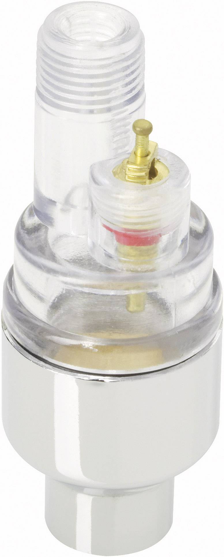 Bei längeren Arbeiten mit Airbrush-Kompressoren kann es vorkommen das Kondenswasser in die Luftleitung gelangt und sich mit der Farbe verbindet und damit die Lackierung beschädigt. Der Wasserabscheider wird einfach zwischen den Kompressor und der Airbrushpistole montiert.