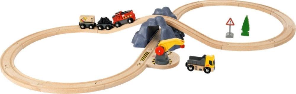 Mit diesem Set kannst du deine Fracht optimal auf Schienen und mit dem LKW transportieren. Baue dir eine acht aus Schienen und tauche ein in die BRIO Welt.