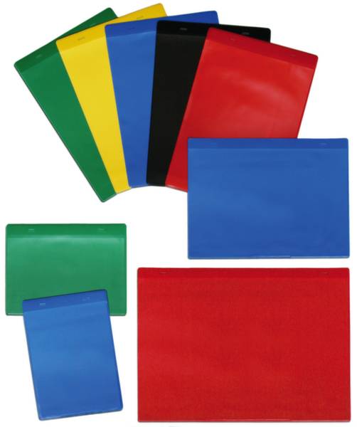 Dokumentenhülle, DIN A5 im Querformat, Höhe x Breite 155 x 230 mm, Aufhängelasche, extra robust mit verschweißten Kanten, in schwarz.