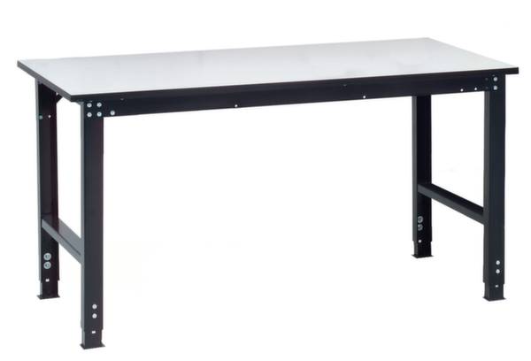 ESD-Montagetisch, Grundelement, Höhe x Breite x Tiefe 770 - 870 x 2000 x 800 mm, Platte aus Holz in Dekor lichtgrau, Plattenstärke 25 mm, Kante mit PVC-Umleimer, 4-Fußgestell aus Stahl, U-Profil, Höhenverstellung über Klemmschrauben.