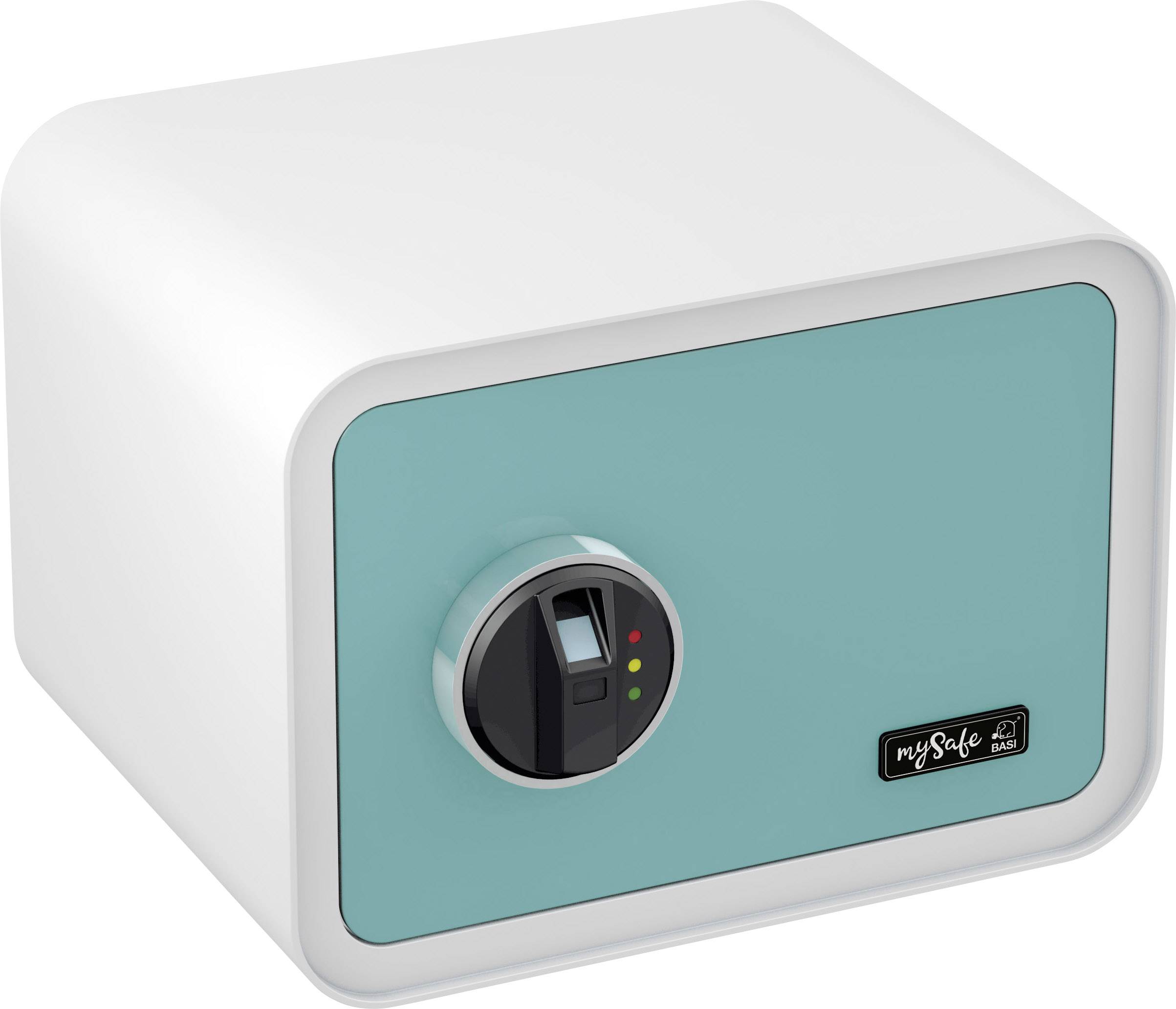 Basi 2018-0002-1013 mySafe 350 Tresor, Einbruchschutztresor Fingerabdruckschloss, Schlüsselschloss Blau, Weiß