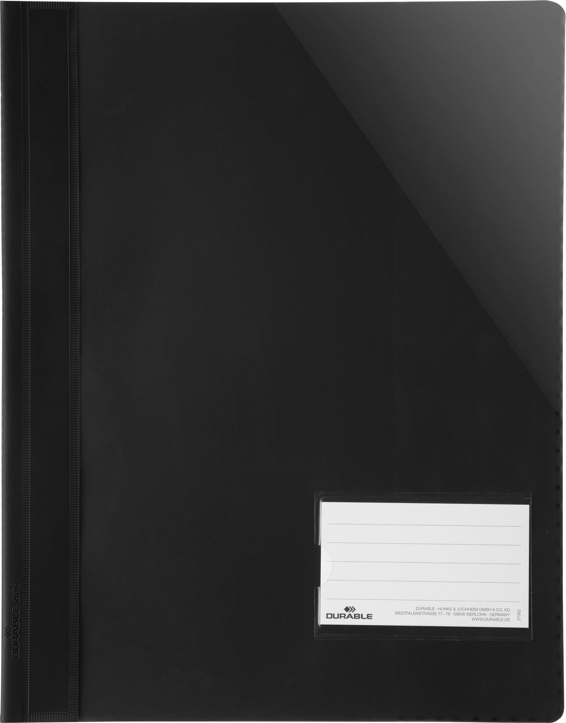 Durable 269001 Sichthefter Schwarz DIN A4+ Beschriftungsfenster (90 x 57 mm), Einreißschutz, Innentasche (Rückseite)