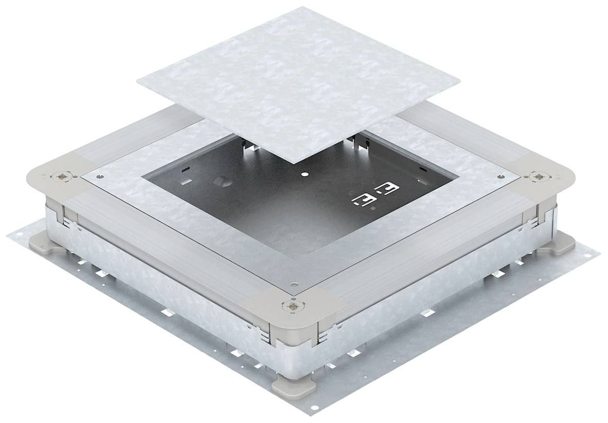 Unterflur-Gerätedose mit Montagedeckel und Deckelblindplatte für estrichüberdeckte Unterflur-Installationssysteme