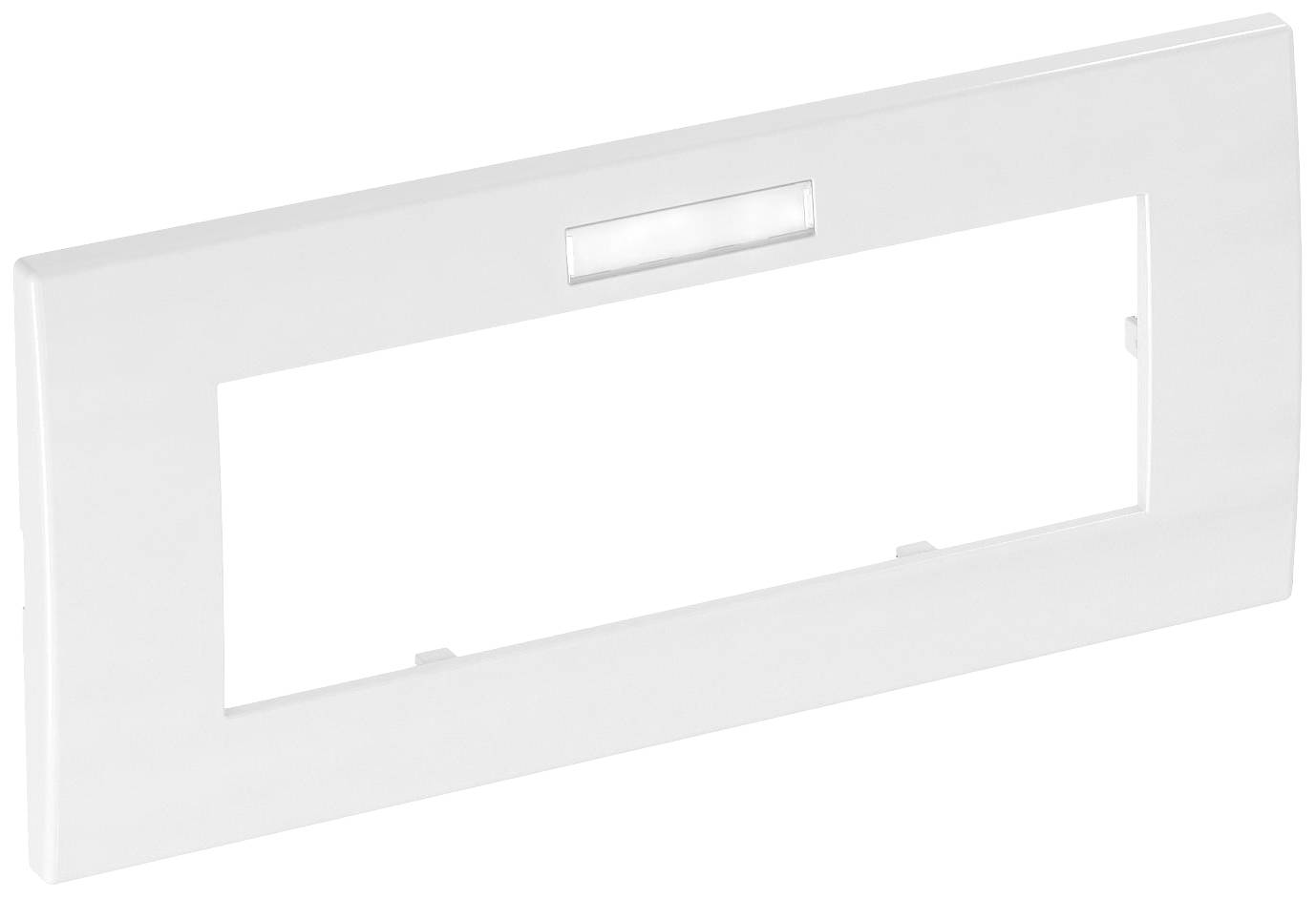 Frontrastender Abdeckrahmen für Modul 45 Einbaugeräte, mit Beschriftungsfeld für waagerechte Geräteinstallation, zum Rasten in Geräteeinbaudose