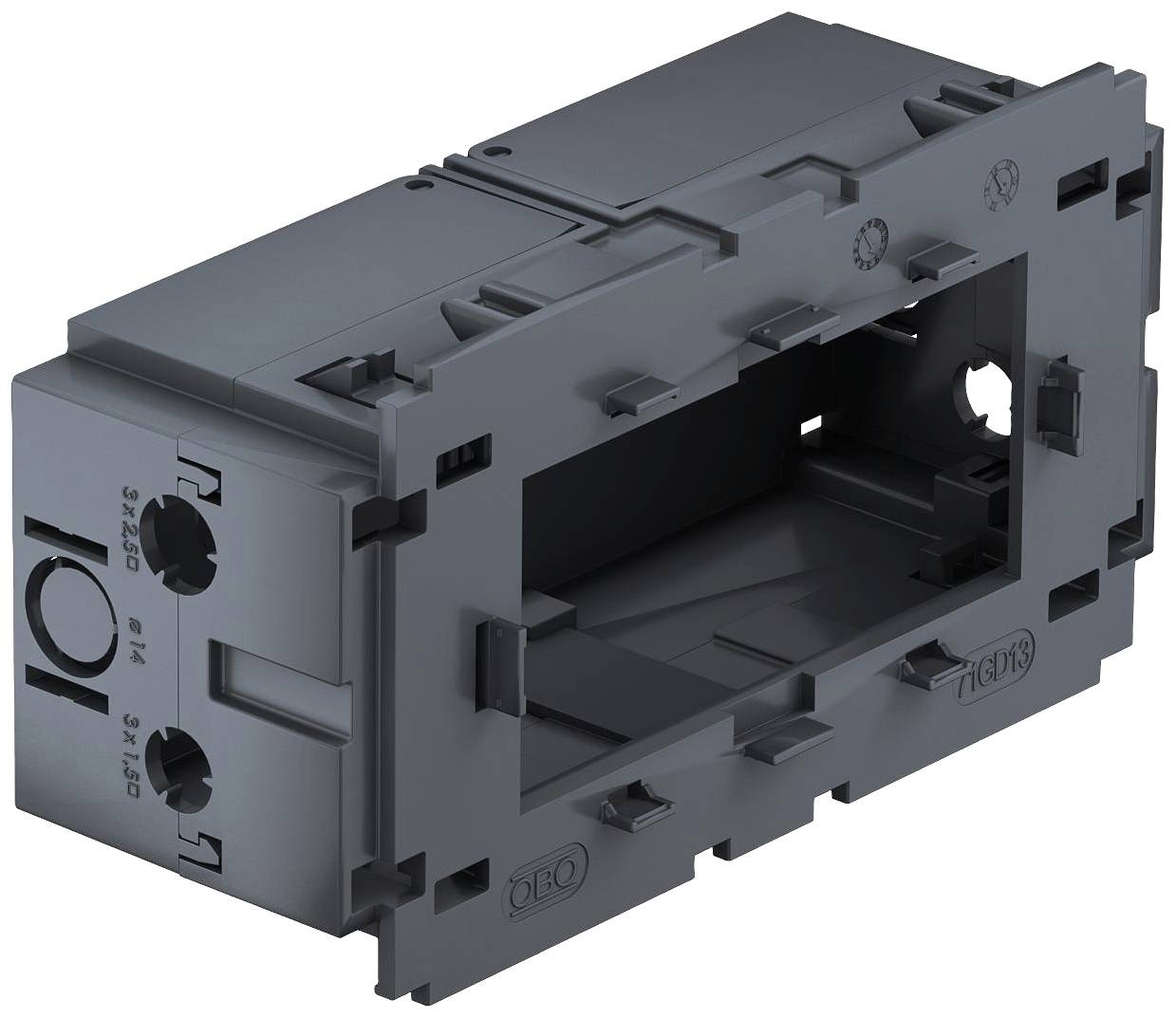04012195889083, 04012195943013, OBO Bettermann, 6288583, 71GD13, Einbaudose, Gerätedose, Geräteeinbaudose, Kanaldose, Kabelkanal, Sockelleiste, Endkappe, Abschlusskappe, Endabdeckung, Abschlußstück