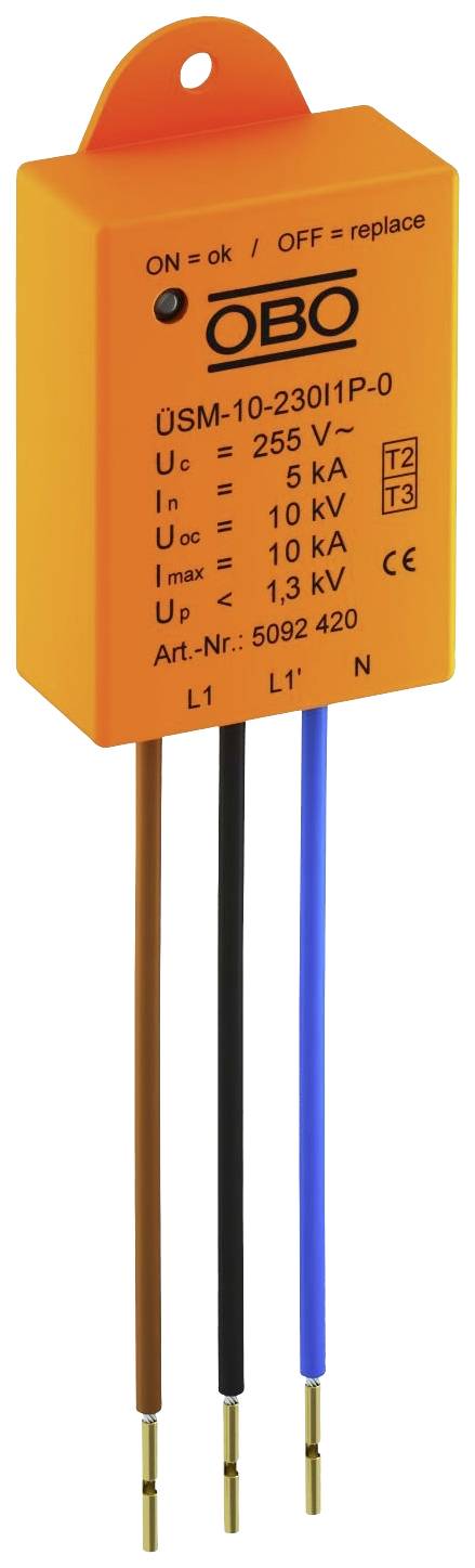 04012196426713, OBO Bettermann, 5092420, ÜSM-10-230I1P-0, Überspannungsschutzmodul, Überspannungsschutzgerät, A0-61