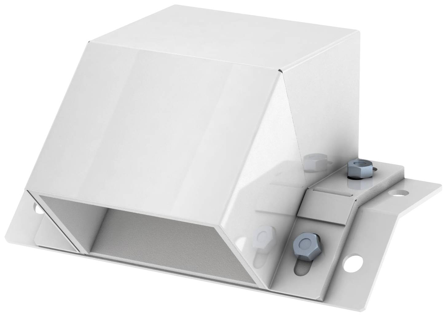 Vertikalbogen in fallender Ausführung zur Herstellung von vertikalen Versprüngen bei abgehängter Montage des BSKM 0711, mit Aufnahmemöglichkeit für Gewindestangen M10. Inklusive Dichtungen und Muttern zum Verbinden der Kanalstrecken und zum Abdichten der Fugen.