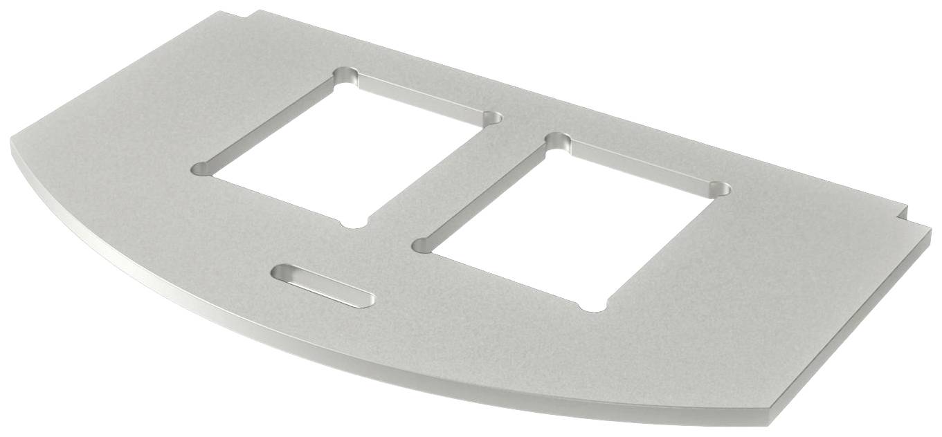 Montageplatte zur Aufnahme von zwei Daten-Anschlussmodulen folgender Typen: Brand-Rex: geschirmt EKU: E-Stone Dätwyler: KS-T, MS-K und KU-T R&M: Snap-In und Keystone Rutenbeck: UM und UMflex SETEC: MKJ, UKJ und XKJ Siemon TERA Telegärtner: AMJ und UMJ. Abmessung einer Montageöffnung 19,30 x 14,80 mm.