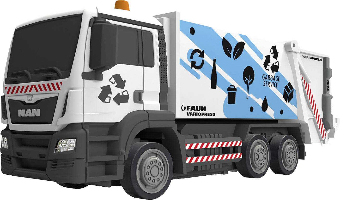 Jeder kennt sie, die großen Abfallsammelfahrzeuge, die die Stadt sauber halten. Jetzt kannst auch du dabei helfen und den Mini RC Truck von Revell Control durch deine eigene Spielwelt steuern. Du kannst den beiliegenden Abfallsammelbehälter manuell in das Fahrzeug entleeren. Damit der Spielspaß richtig lange anhält, kann das Fahrzeug an der 2-Kanal-MHz-Fernsteuerung in wenigen Minuten wieder aufgeladen werden. Originalgetreue Nachbildung mit MAN Lizenz.