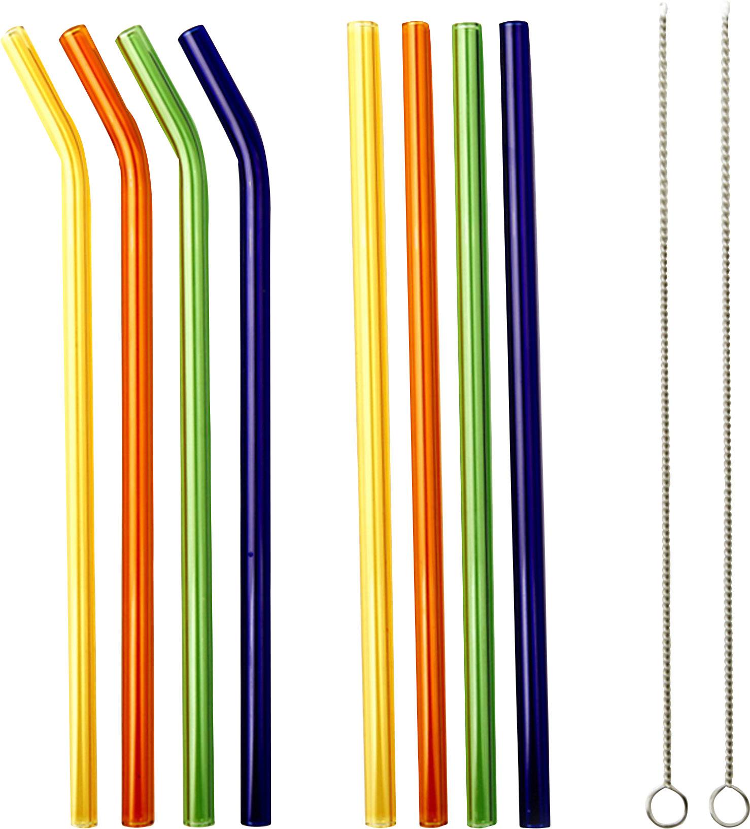 Stilvolles Set aus 8 bunten Glastrinkhalmen - 4 gerade + 4 gebogen