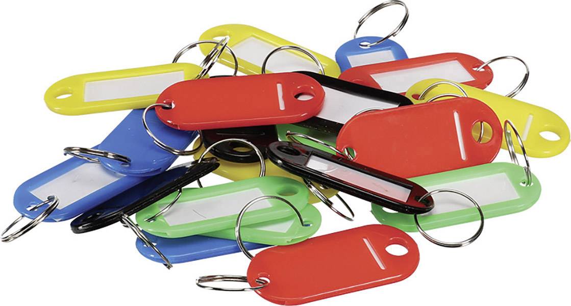 Schlüsselanhänger aus Kunststoff mit Schlüsselring zur Kennzeichnung von Schlüsseln. Die Etiketten lassen sich leicht beschriften und auswechseln.