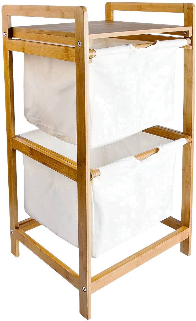 Der Wäschesammler LINEA aus Bambus mit Stofffächern ist praktisch und zugleich dekorativ. In den beiden Fächern bewahren Sie gewaschene Textilien wie Handtücher, Bettwäsche etc. oder Schmutzwäsche gut sortiert auf. Die beiden Stoffbeutel sind übereinander angeordnet und werden in das Bambusgestell eingehängt. Das Gestell ist ca. 73 cm hoch, wobei die Oberkante in Form von 2 Tragegriffen gestaltet ist. Dadurch können Sie den Wäschesammler leicht und bequem transportieren.