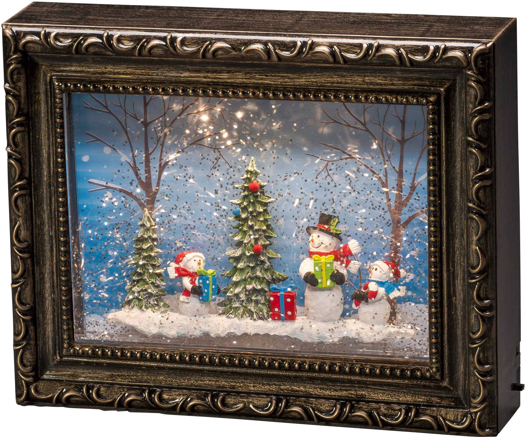 Konstsmide 4376-000 LED-Szenerie Bilderrahmen mit Schneemännern Warmweiß LED Braun beschneit, mit Wasser gefüllt, Timer, mit