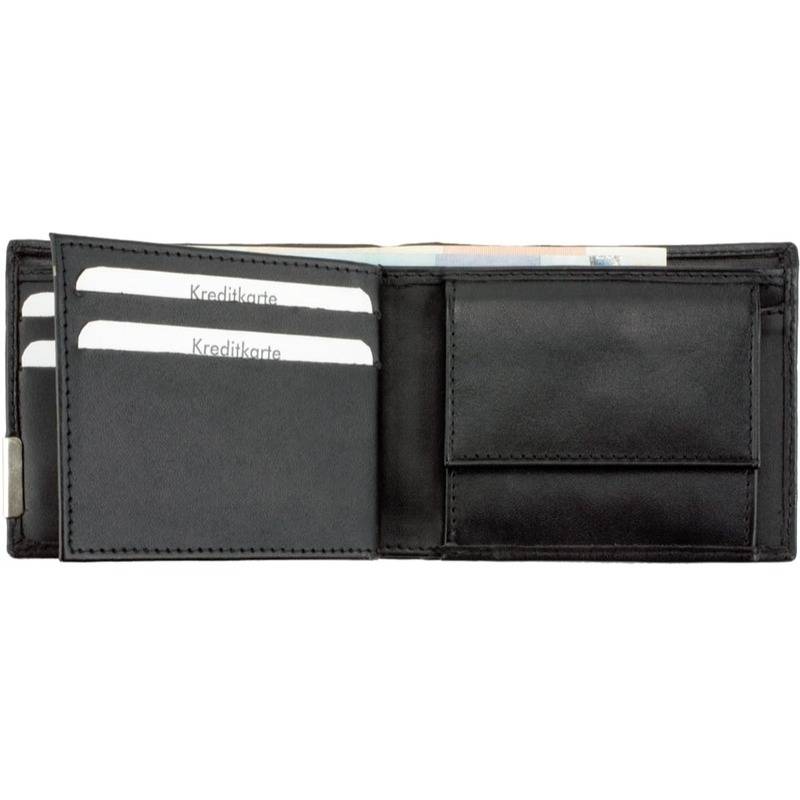 Alassio Geldbörse, Querformat, Leder, schwarz mit Metallemblem, vier Kreditkartenfächer, Netzfach,