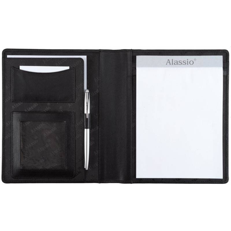 Alassio Schreibmappe "BORMIO", A5, Nappa-Leder, schwarz mit DIN A5 Block, A5 Einschubfach, Visitenkartenfach &