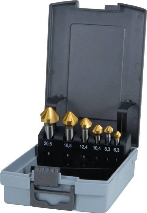 Kegelsenkersatz DIN 335C 90Grad 6,3-20,5mm HSS TiN 6-tlg.Ku.-Kass.RUKO