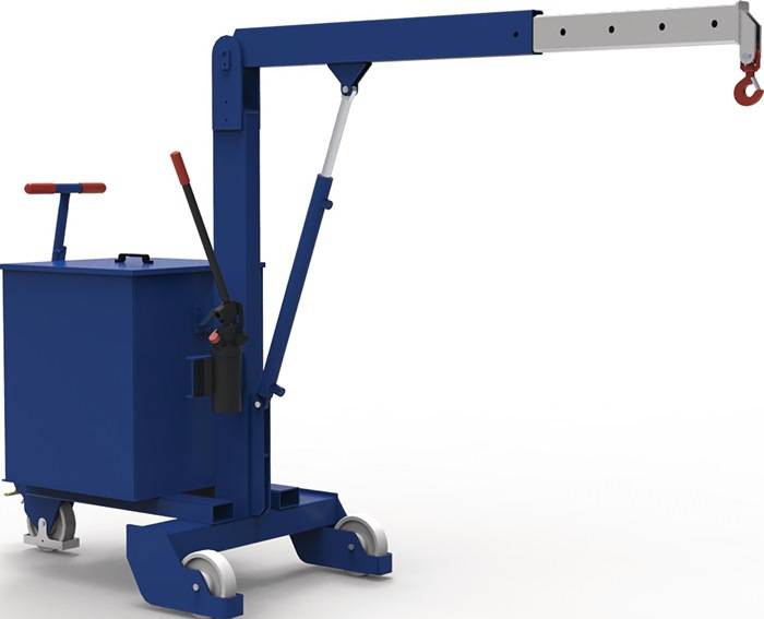 kompakte Stahlbauweise mit aufgebautem Gegengewichts-Ballastbehälter · Hubzylinder mit hartverchromter Kolbenstange · Hydraulikpumpe mit Handhebel und feinregulierbarem Ablassventil · Teleskopausleger 6-fach verstellbar, mit drehbarem Wirbellasthaken nach DIN EN 1677-1 · einfaches Rangieren über Verzahnungsanschlag · Polyamid-Schwerlastlaufrollen Ø 200 mm · Fahrwerksicherung durch Fußbremse · gemäß UVV und BGV-BGR 500 · Schwerlast-Polyurethanräder und Ausführung elektrisch verfahrbar oder Seilwinden-Version auf Anfrage lieferbar Weitere technische Eigenschaften: · Fahrgestellbreite: 810mm · Fahrgestelllänge: 1330mm · Rad-Ø: 200mm · Farbe: gelborange, RAL 2000 · Gewicht ca. (ohne Ballast): 170kg · Hydraulikpumpe: einfach wirkend · Tragfähigkeit bei Auslegerausladung: 500/830 kg/mm / 435/980 kg/mm / 370/1130 kg/mm / 330/1280 kg/mm / 300/1430 kg/mm / 275/1580 kg/mm / 250/1730 kg/mm · prüfpflichtig: ja